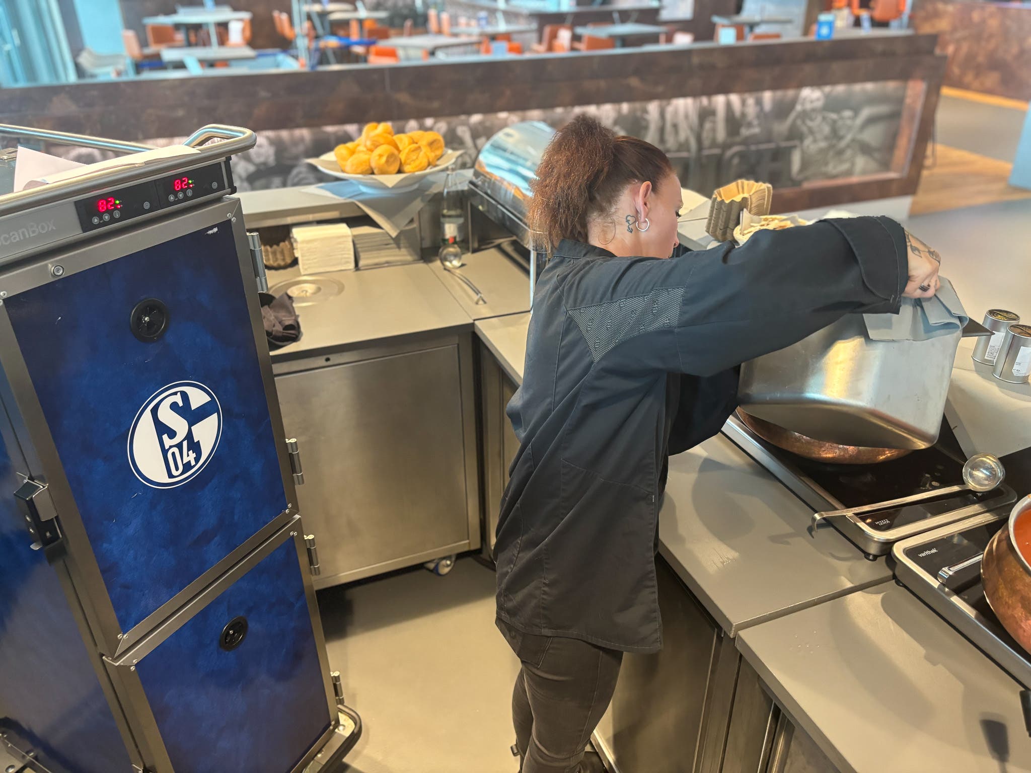 Ein konkretes Beispiel ist die Halbzeitverpflegung in den VIP-Logen, in denen 72 Boxen mit Currywurst und Waffeln versorgt werden. Früher wurde dies alles am Spieltag frisch zubereitet und verpackt – heute erfolgt die Vorbereitung bereits am Vortag. ”Allein diese Änderung spart uns über 100 Arbeitsstunden pro Saison“, erklärt der Küchenchef.Markus Dworaczek, Head Chef