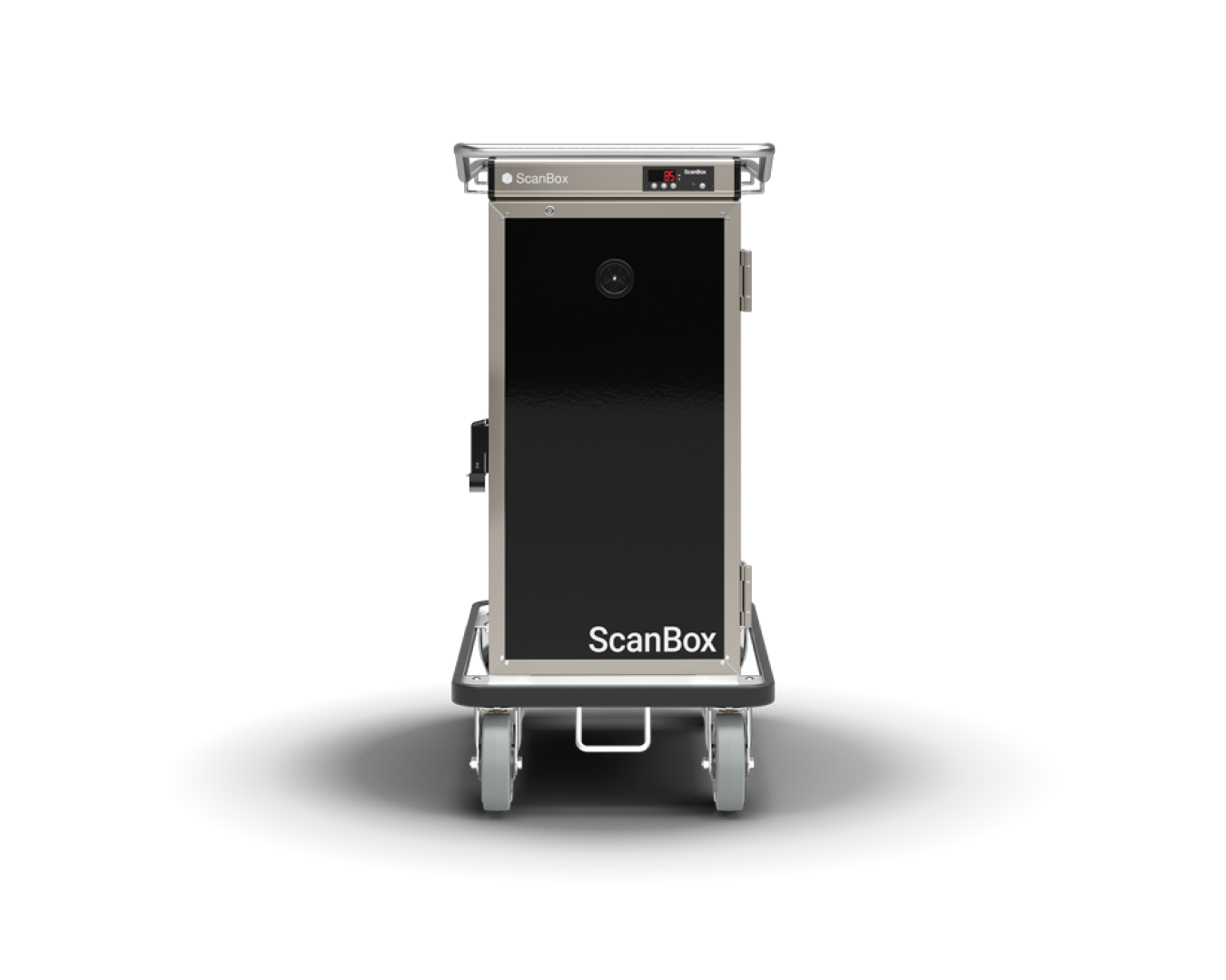 Zur Standardausstattung gehören ScanBox Digitalsteuerung, Exzenter-Verschluss, stabile Tür, 160 mm große feststellbare Rollen, herausnehmbare U-Schienen mit 80 mm Abstand, Schwarz RAL 9005 sowie Stromversorgung 220–230 V / 1~.