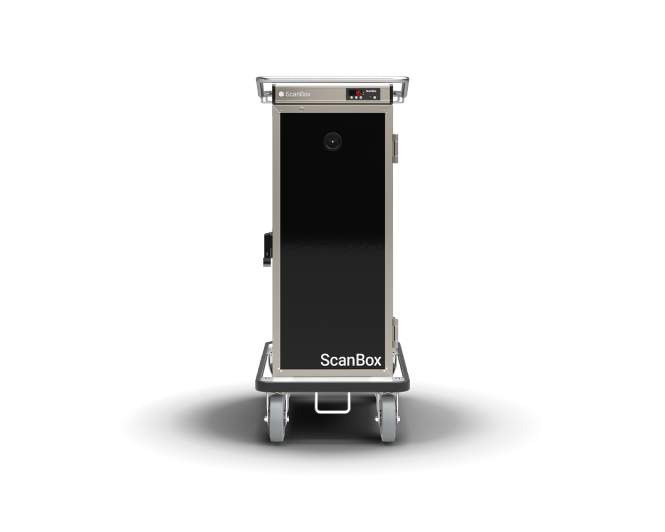Zur Standardausstattung gehören ScanBox Digitalsteuerung, Exzenter-Verschluss, stabile Tür, 160 mm große feststellbare Rollen, herausnehmbare U-Schienen mit 80 mm Abstand, Schwarz RAL 9005 sowie Stromversorgung 220–230 V / 1~.