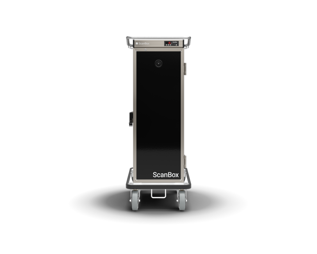 Zur Standardausstattung gehören ScanBox Digitalsteuerung, Exzenter-Verschluss, stabile Tür, 160 mm große feststellbare Rollen, herausnehmbare U-Schienen mit 80 mm Abstand, Schwarz RAL 9005 sowie Stromversorgung 220–230 V / 1~.