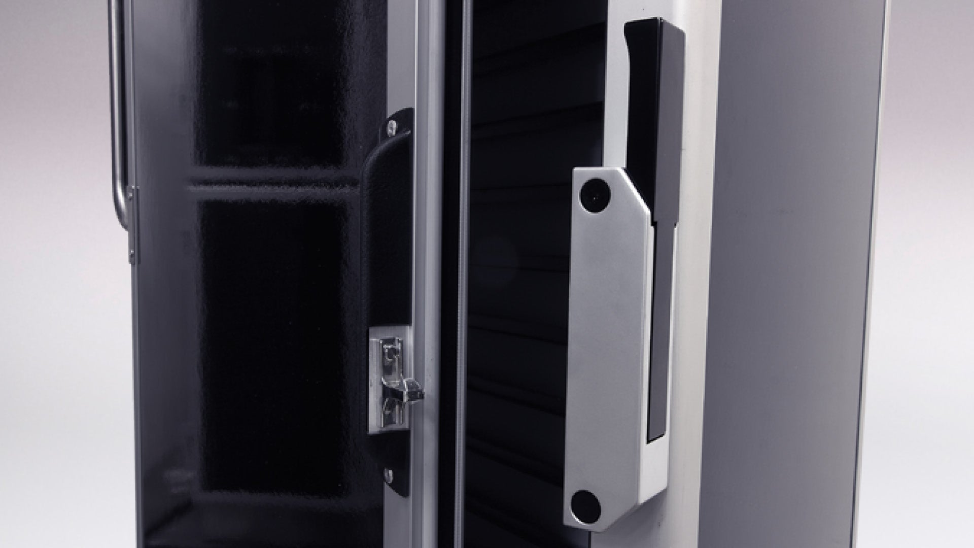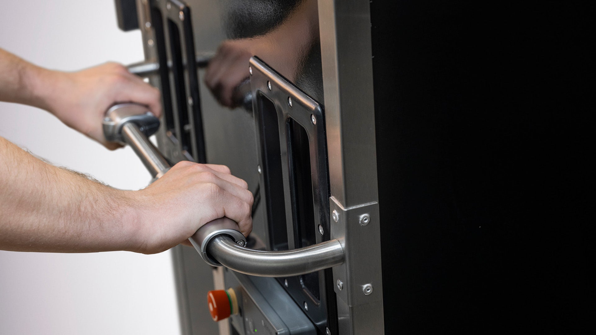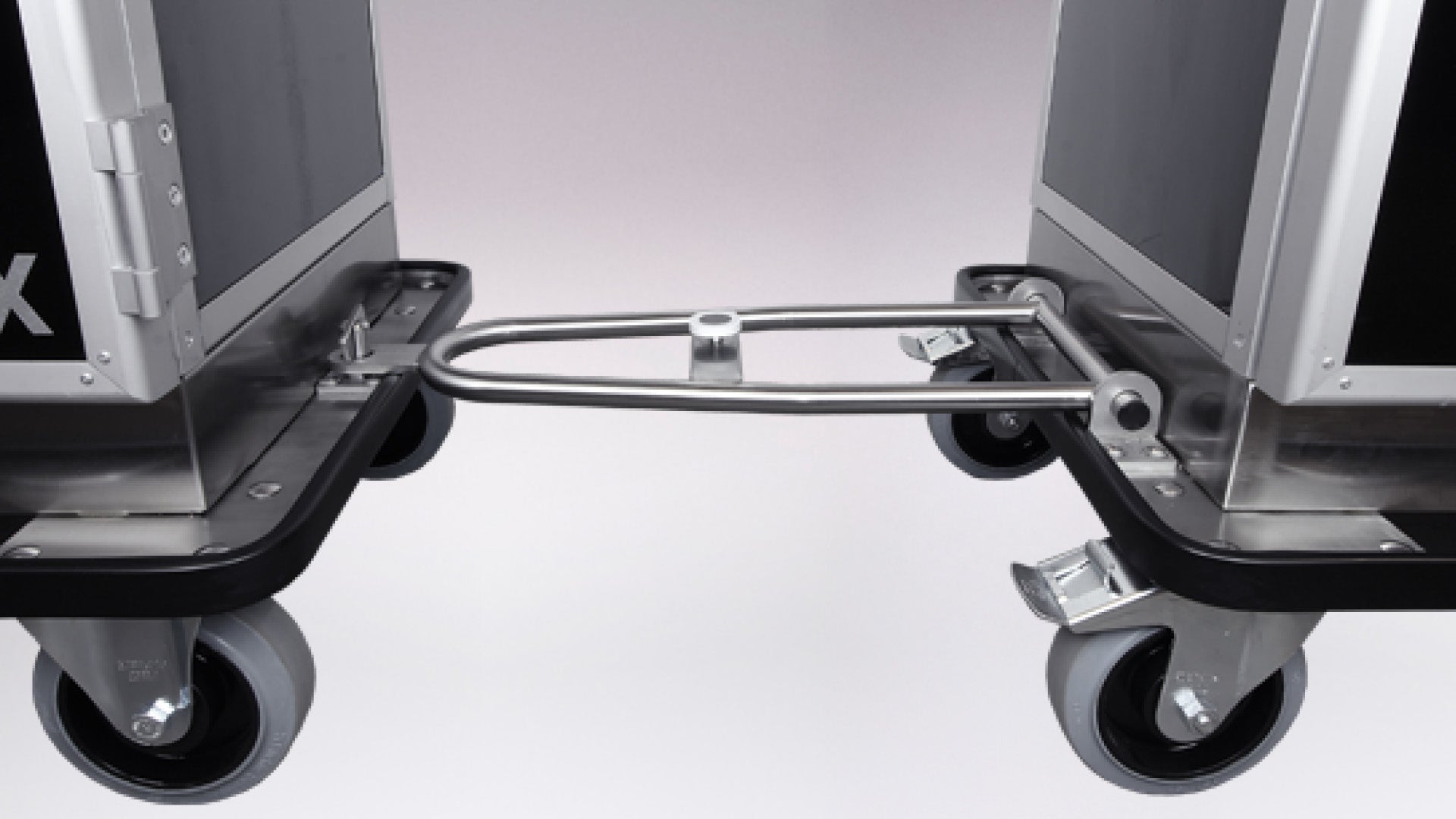 Erleichtert die Handhabung: Mit nur einem Fußtritt werden beide Räder blockiert, sodass die Box stabil steht.