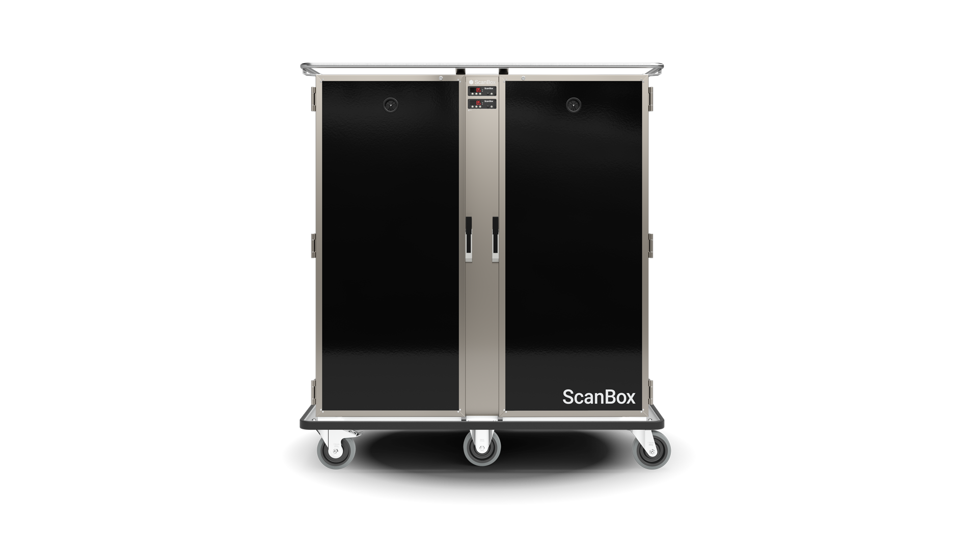 Equipped with ScanBox Digital Control, One grip handle, solid doors, 160 mm lockable wheels, removable U-guide rails with 80 mm spacing, black RAL 9005, 220-230V single phase as standard. The equipment can be easily adapted as required through available extra options.