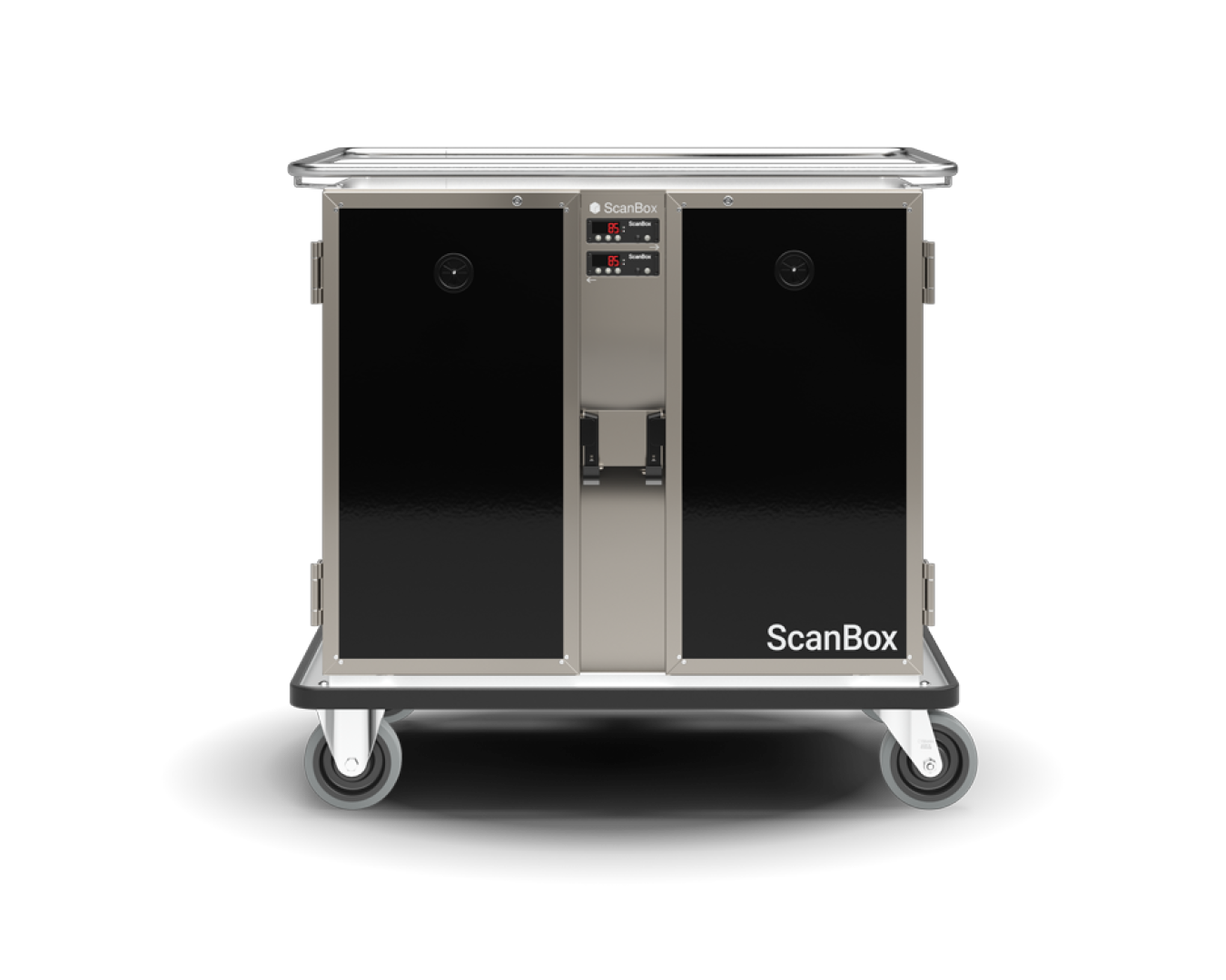 Equipped with ScanBox Digital Control, One grip handle, solid doors, 160 mm lockable wheels, removable U-guide rails with 80 mm spacing, black RAL 9005, 220-230V single phase as standard. The equipment can be easily adapted as required through available extra options.