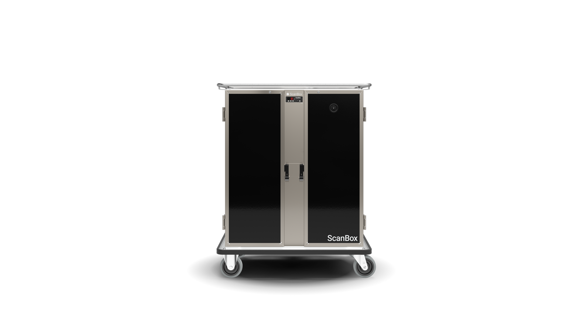 Equipped with ScanBox Digital Control, One grip handle, solid doors, 160 mm lockable wheels, removable U-guide rails with 80 mm spacing, black RAL 9005, 220-230V single phase as standard. The equipment can be easily adapted as required through available extra options.