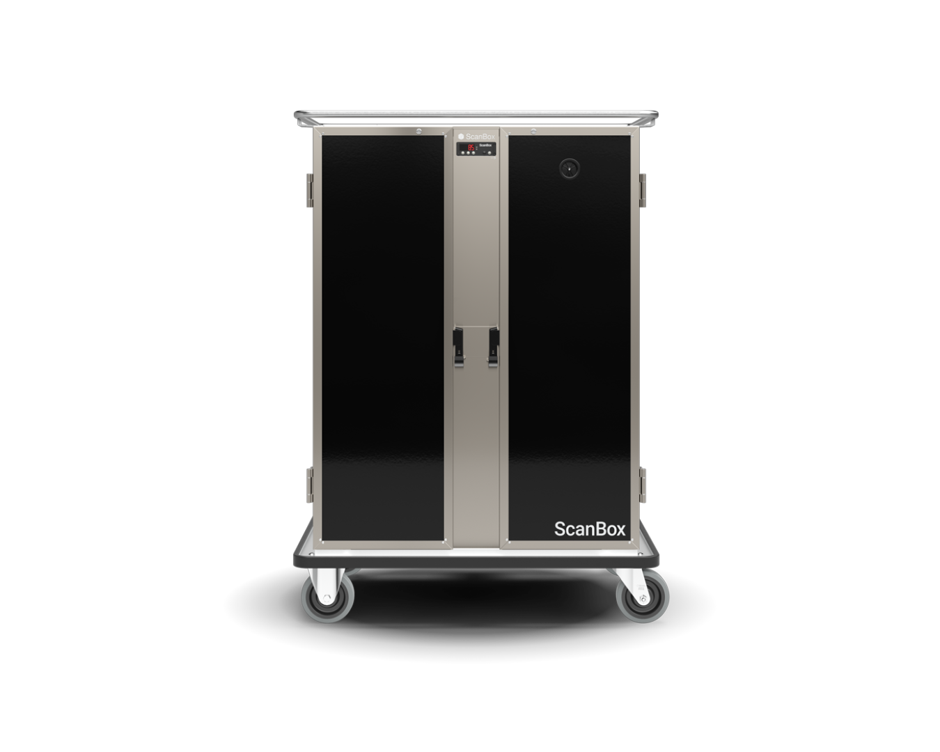 Equipped with ScanBox Digital Control, One grip handle, solid doors, 160 mm lockable wheels, removable U-guide rails with 80 mm spacing, black RAL 9005, 220-230V single phase as standard. The equipment can be easily adapted as required through available extra options.